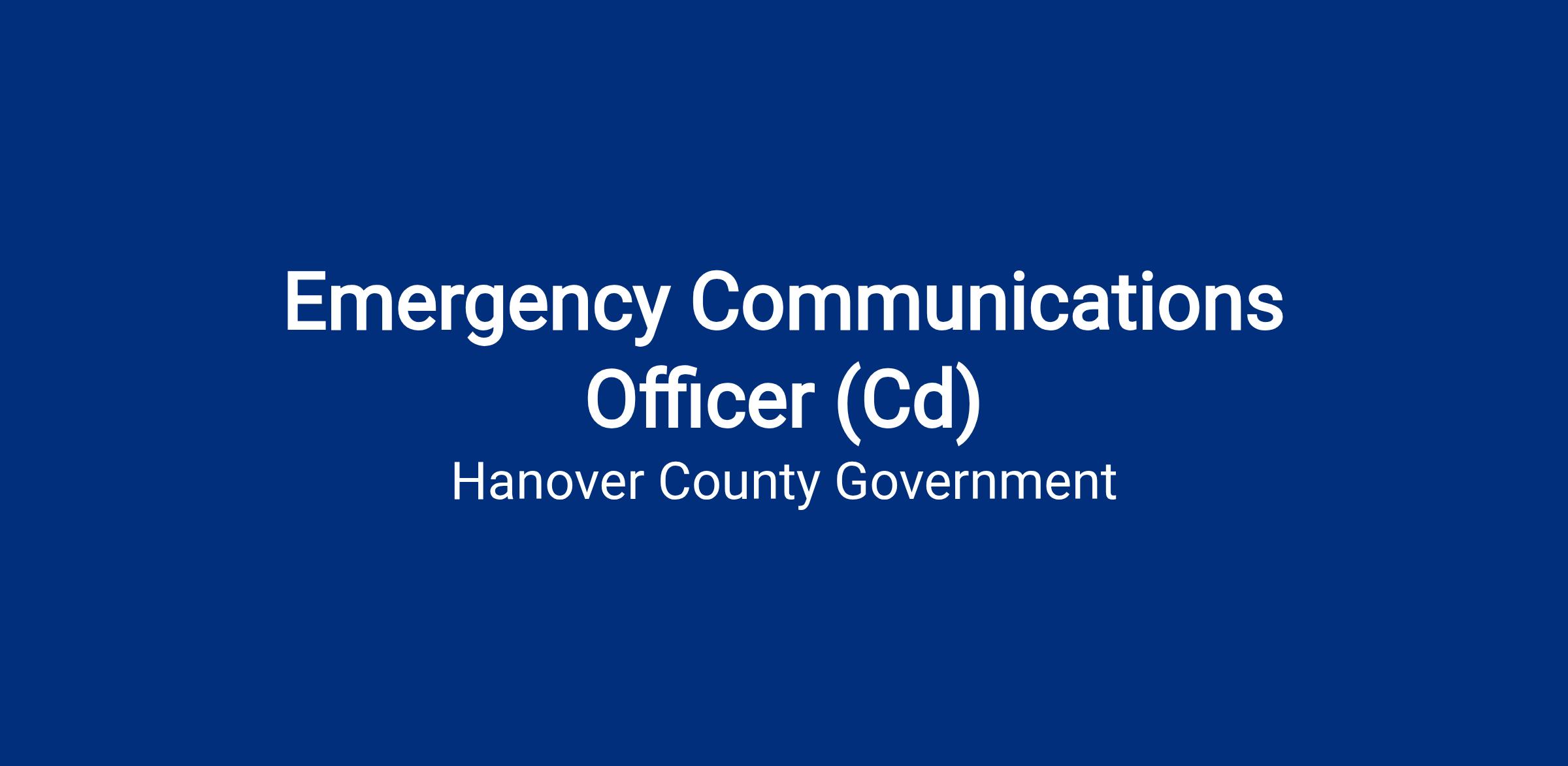Organization: The Emergency Communications Officer position is part of Hanover County's Career Development Program (CD). The Emergency Communications Officer Ladder has four levels ranging from Emergency Communications Officer First Class to Emergency Communications Officer - Career. Incumbents report to an Emergency Communications Supervisor and supervise no staff. However, Senior Emergency Communications Officers - Master and Career may serve as workflow leaders to lower-level Officers.