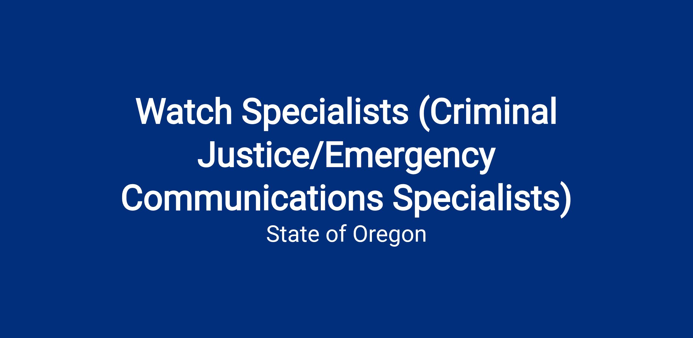 The Oregon Department of Emergency Management (OEM) is excited to announce a new opportunity for a Watch Specialist (Criminal Justice/Emergency Communications Specialist) to join our team! We welcome you to join us today!